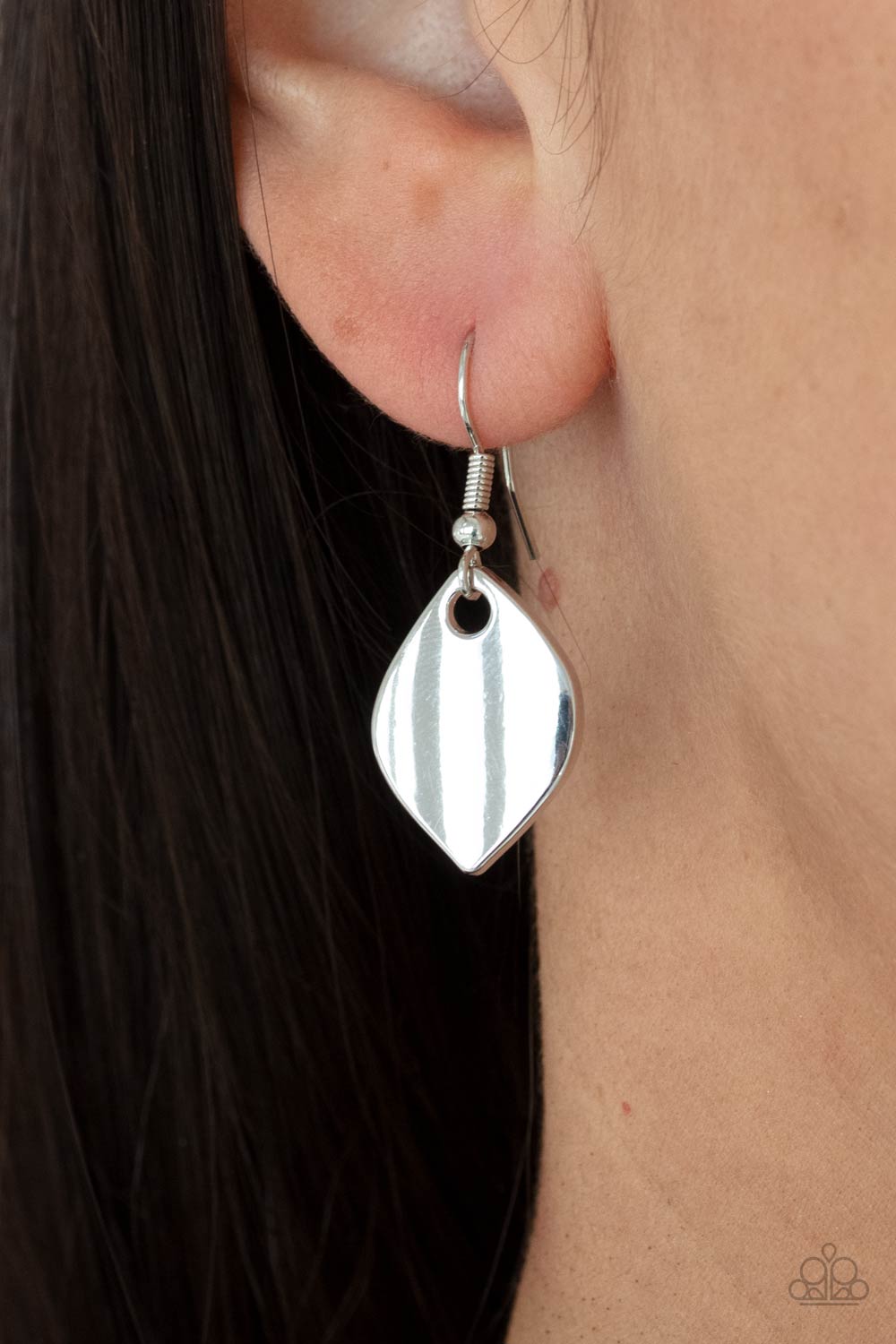 Varying in size, flared silver frames and a hammered shiny copper plate are knotted in place at the bottom of a green cord for an artisan inspired display. Features an adjustable clasp closure.